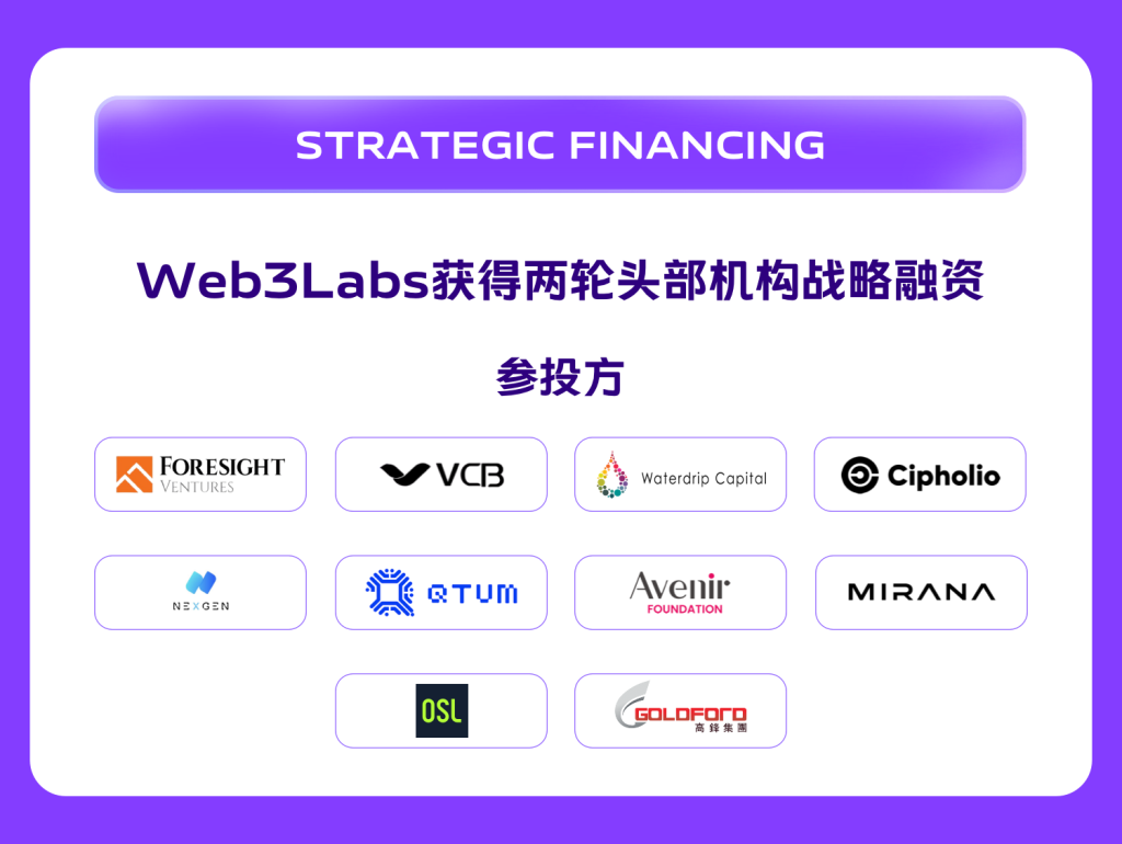 从去年至今年我们成功完成两轮战略融资,获得Foresight Ventures、Waterdrip Capital、VCB、Cipholio、Qtum、Avenir Capital、Mirana Ventures、OSL等顶级机构的资本加持。这些战略投资不仅为我们注入发展动能,更通过与投资方的深度协同,构建起涵盖技术研发、合规架构、流动性支持的全链条资源网络,为被孵项目搭建起直达行业核心资源的快车道。