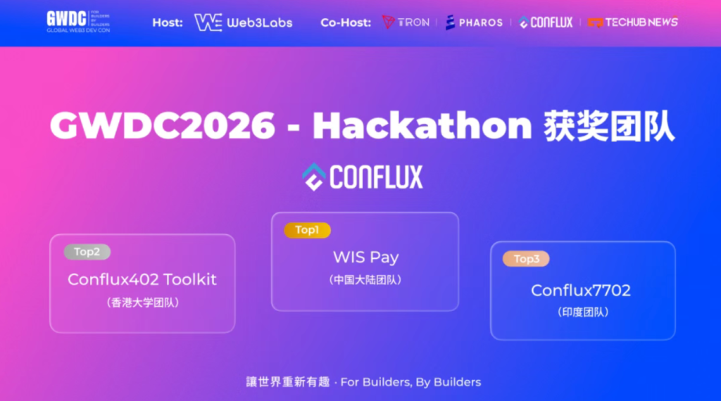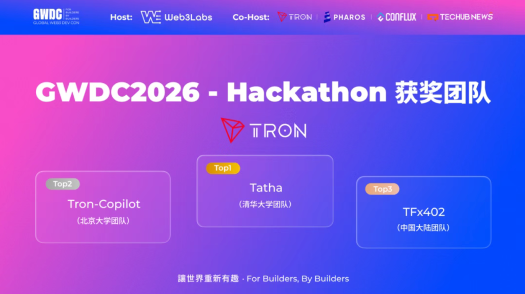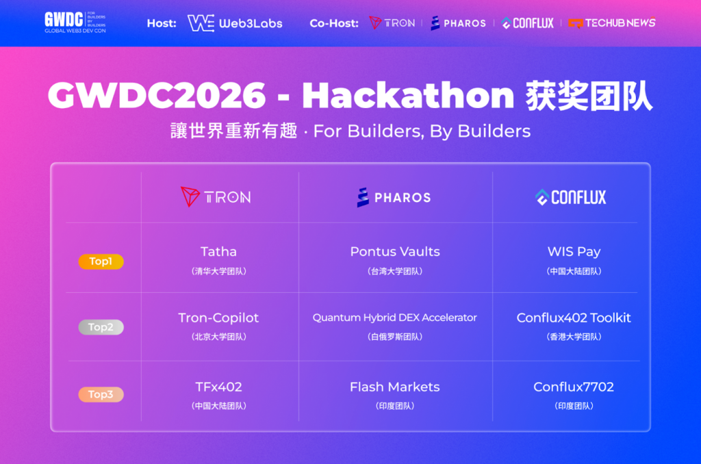 From February 7 to 9, 2026, the Hackathon, a core component of the Global Web3 Dev Con 2026 (GWDC 2026), was successfully held at Cyberport, Hong Kong. The event was hosted by Web3Labs and co-organized by Tron, Pharos, Conflux, and Techub News.