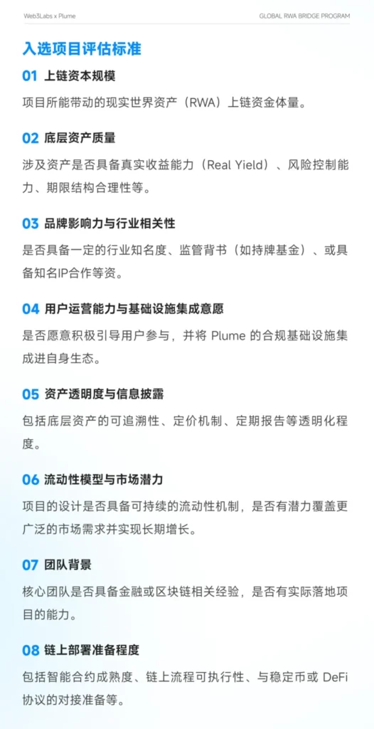 2025 年 7 月,在香港加速建設國際虛擬資產中心的政策背景下,Web3Labs 與 Plume 達成戰略合作。雙方將依託 香港金融管理局(HKMA) 的監管框架及 證券及期貨事務監察委員會(SFC) 的合規指引,共同構建首個專注於機構級現實資產代幣化(RWA)的橋樑計劃,打通傳統金融與區塊鏈生態之間的合規互動通道。