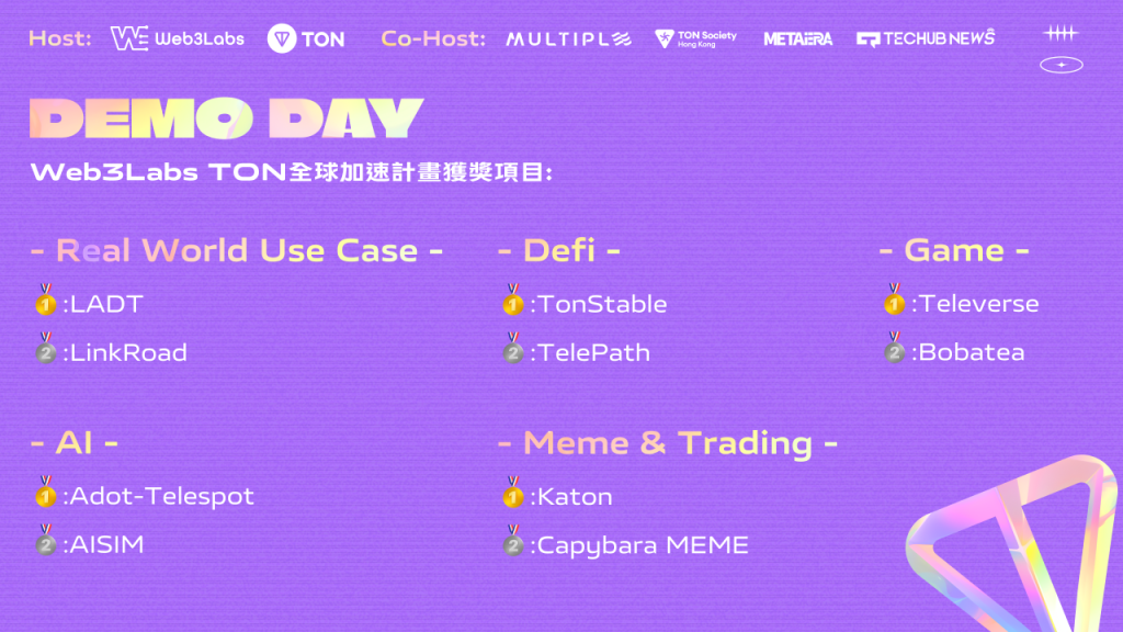 Web3Labs TON全球加速计划Demo Day获奖项目一览,共建TON生态未来